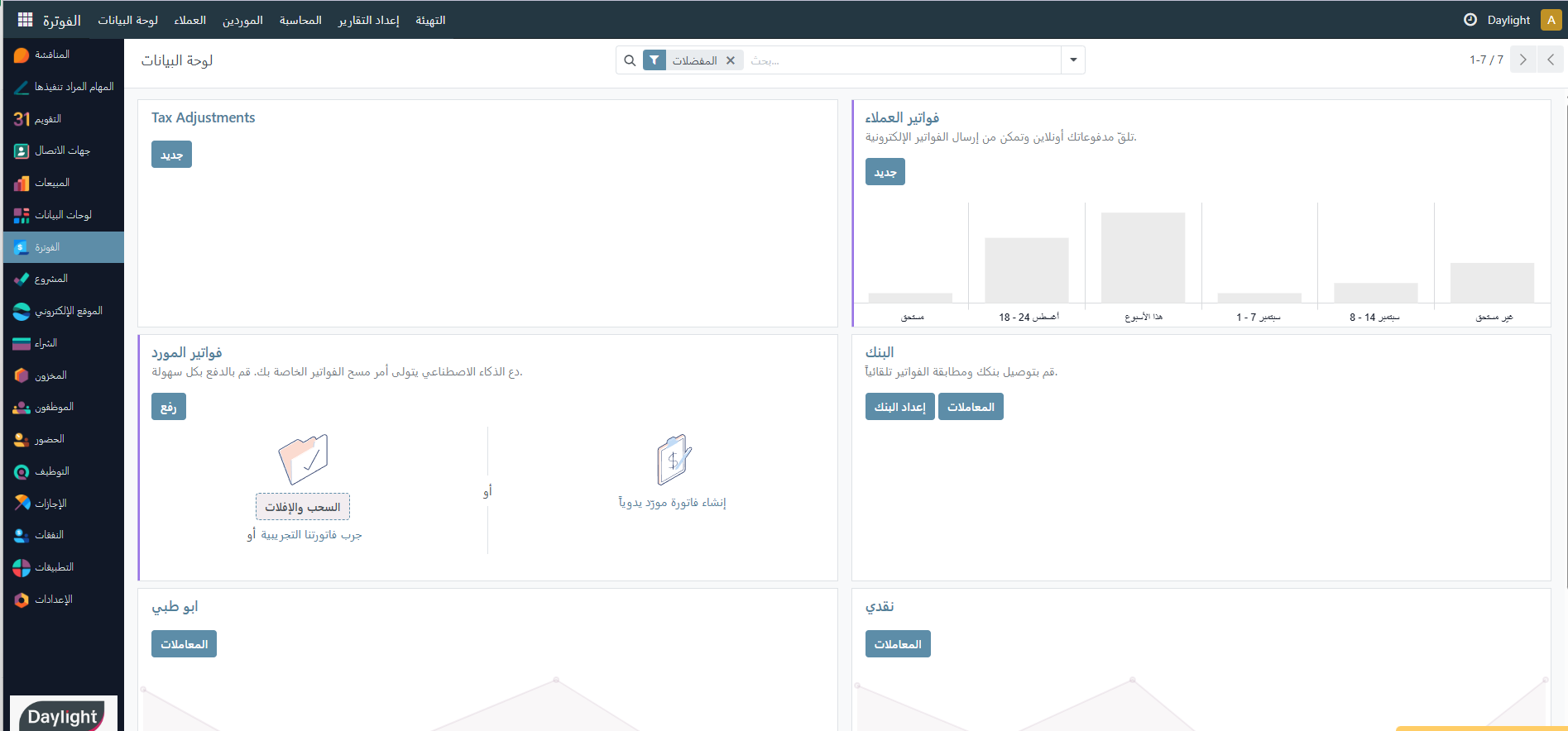 تسعى شركة دايلايت إلى تحسين كفاءة عملياتها الإدارية والمالية عبر نظام ERP متكامل يساعد على توحيد البيانات والإجراءات، وتعزيز الشفافية. الحل المقترح مبني على فكرة ERP لتوفير إدارة شاملة وسهلة الاستخدام.